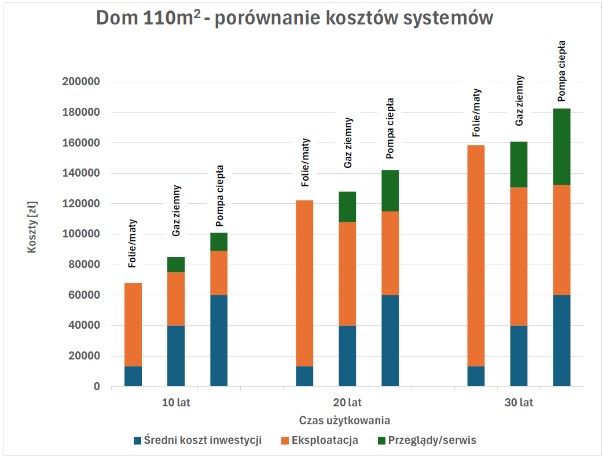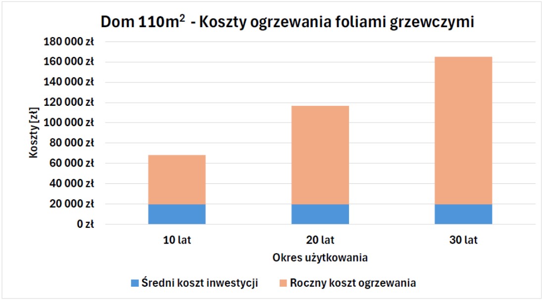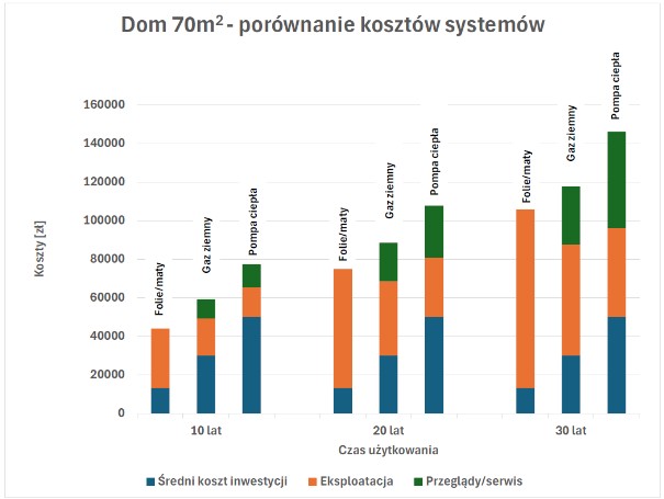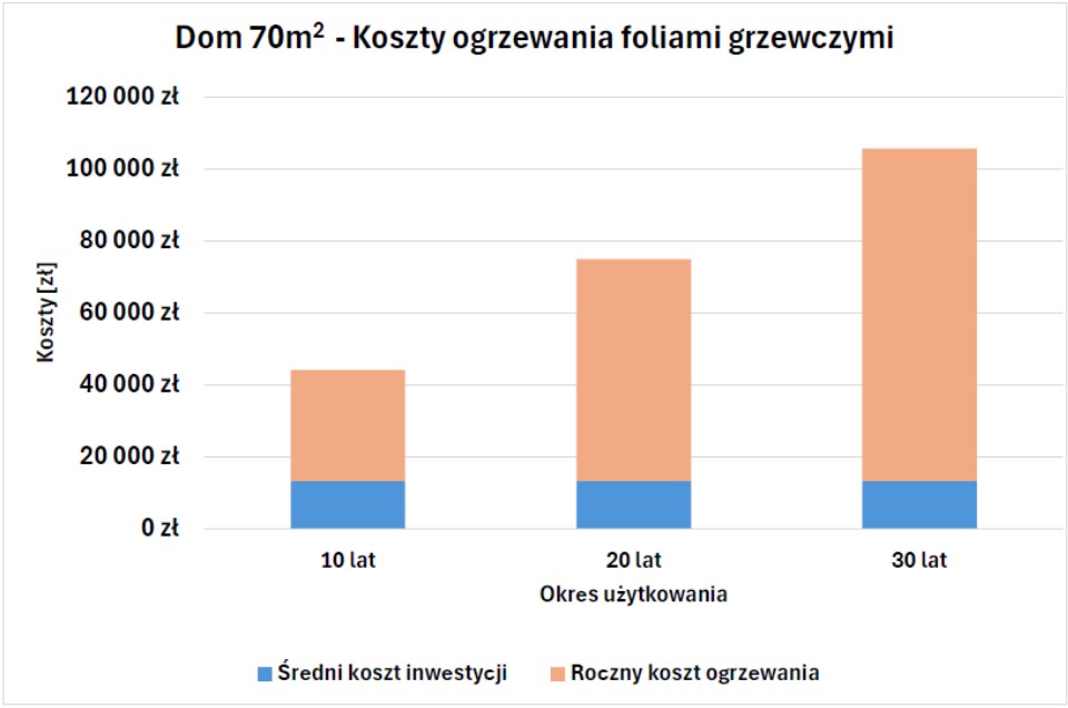 | Okres użytkowania | Średni koszt inwestycji | Roczny koszt ogrzewania |